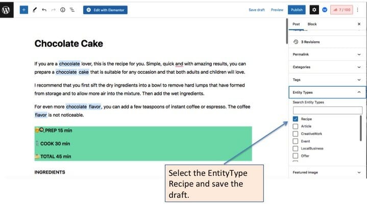 Adding Schema Markup to recipes with WordLift is very simple and requires only a few steps.